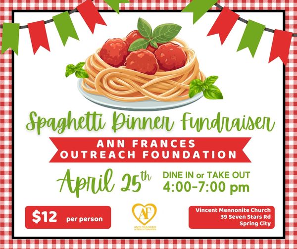Join us on April 25th at Vincent Mennonite Church in Spring City for our Spaghetti Dinner Fundraiser. Drop in between 4 and 7 pm for a casual, fun meal supporting the Foundation's work to address the root causes of housing insecurity in Berks, Chester, and Montgomery counties.